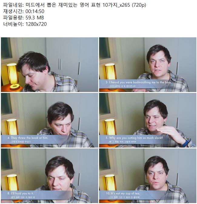 교육 미드에서 뽑은 재미있는 미드에서 뽑은 재미있는 영어 표현 10가지_x265 (720p) 쿠무 2026.04.24 4,903 59.3M 다운로드 1개 파일 미드에서 뽑은 재미있는 영어 표현 10가지_x265 (720p).mkv 59.3M 다운 추천 428 북마크 공유 목록 Tags 미드에서 뽑은 재미있는 영어 표현
