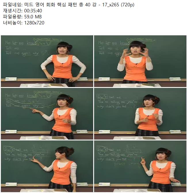 교육 미드 영어 회화 미드 영어 회화 핵심 패턴 총 40 강 - 17_x265 (720p) 쿠무 2026.04.24 7,264 59.0M 다운로드 1개 파일 미드 영어 회화 핵심 패턴 총 40 강 - 17_x265 (720p).mkv 59.0M 다운 추천 489 북마크 공유 목록 Tags 미드 영어 회화 핵심 패턴