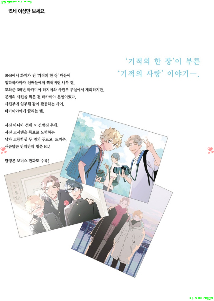 만화 BL만화 노지 군청 [BL만화] 노지 - 군청 헐레이션.하권[냥면] 07.03 디스사랑 2026.04.25 4,496 110.8M 다운로드 1개 파일 [BL만화] 노지 - 군청 헐레이션.하권[냥면] 110.8M 다운 추천 495 북마크 공유 목록 Tags BL만화 노지 군청 헐레이션 하권
