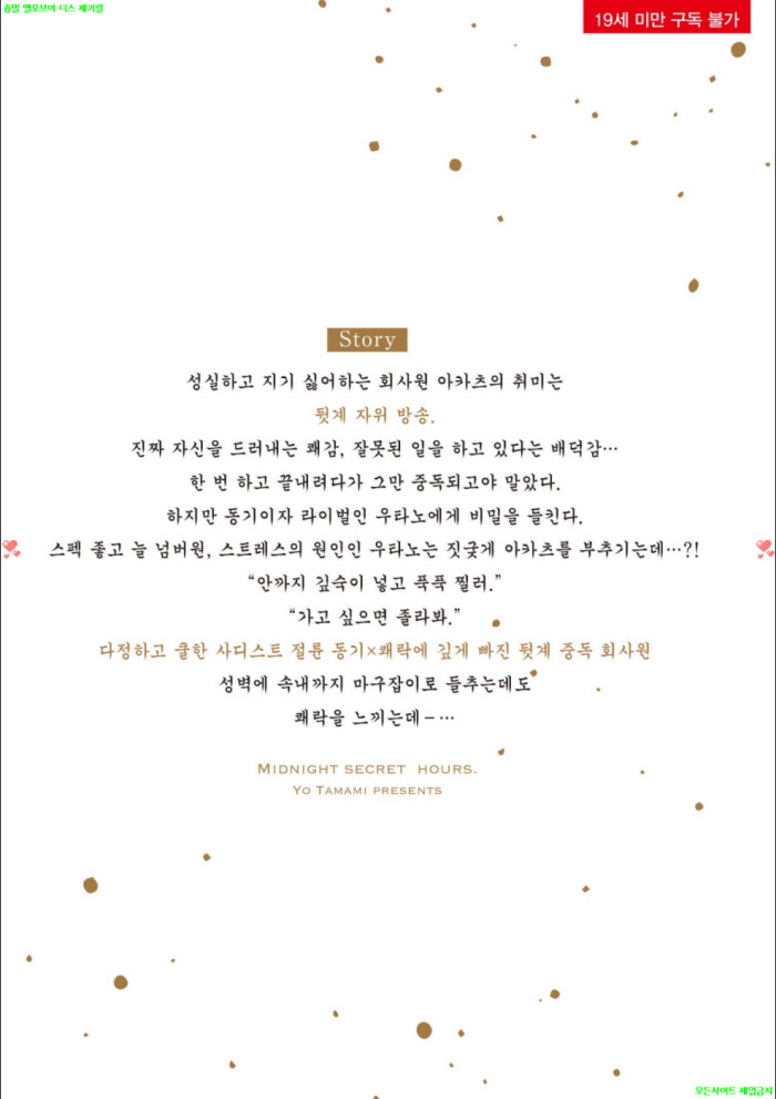만화 BL만화 타마미 요오 [BL만화] 타마미 요오 - 심야 0시의 말 못 할 비밀.상권[냥면] 12.02 디스사랑 2026.04.25 7,157 122.9M 다운로드 1개 파일 [BL만화] 타마미 요오 - 심야 0시의 말 못 할 비밀.상권[냥면] 122.9M 다운 추천 304 북마크 공유 목록 Tags BL만화 타마미 요오 심야 0시의