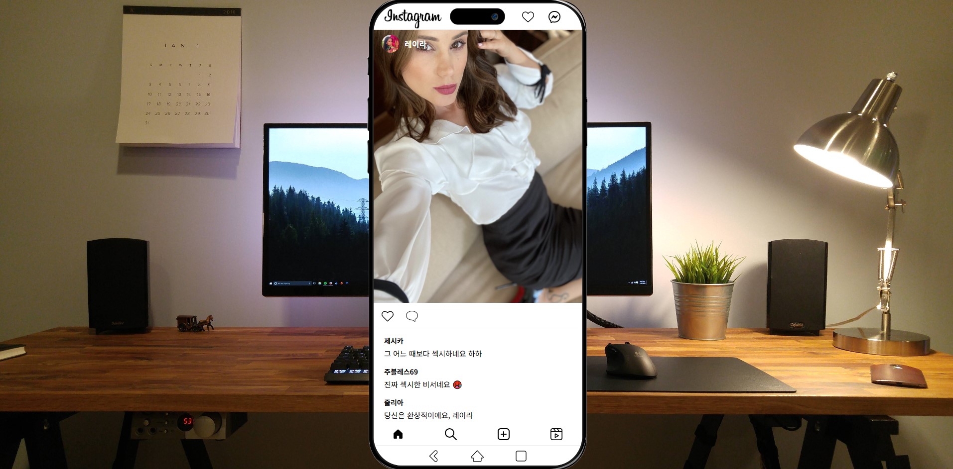 남편 역할을 하면서 아름다운 아내와 함께