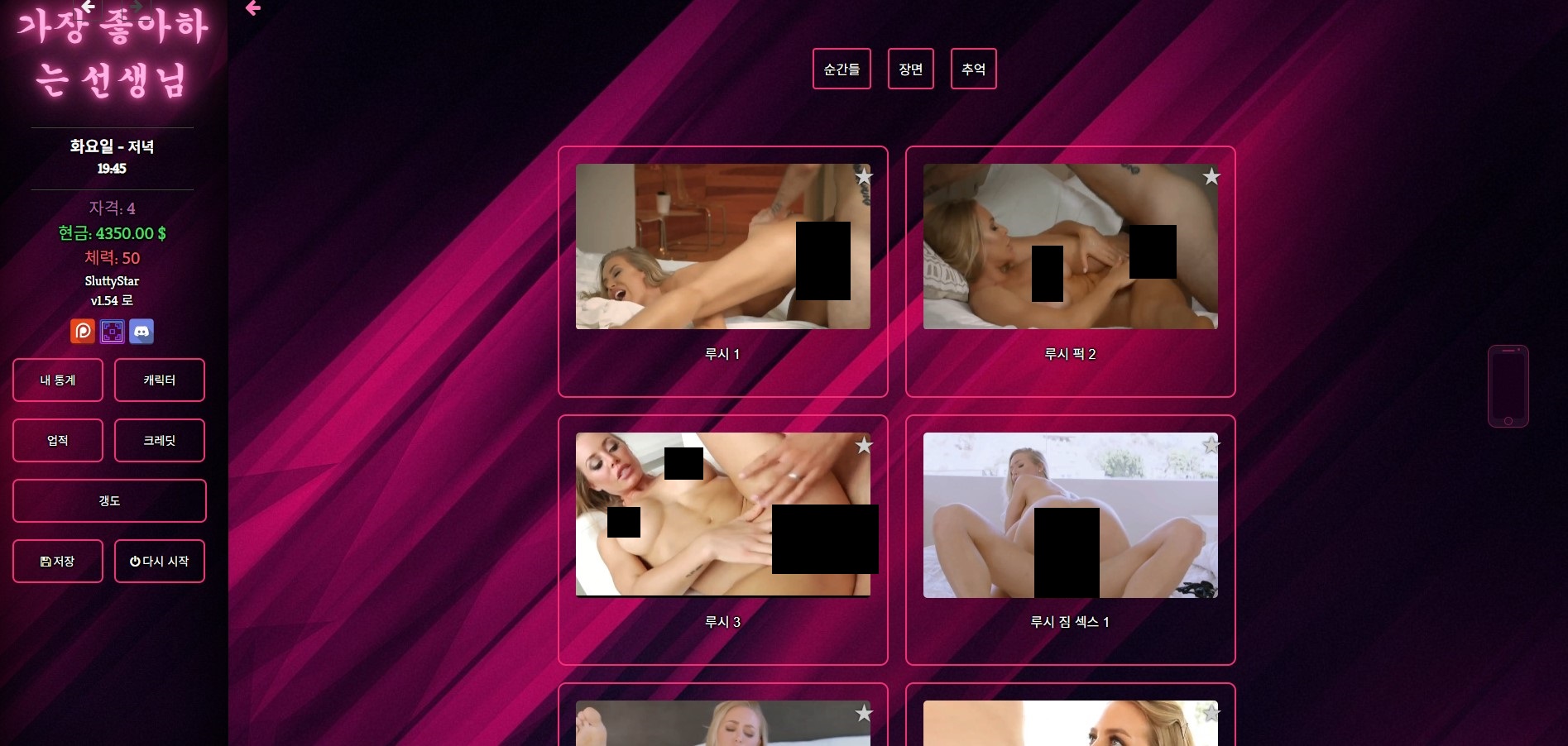 화면 왼쪽 아래 "저장하기"버튼을 클릭하고 디스크에서 로드를 누른후 세이브 파일을 불러오기 하면