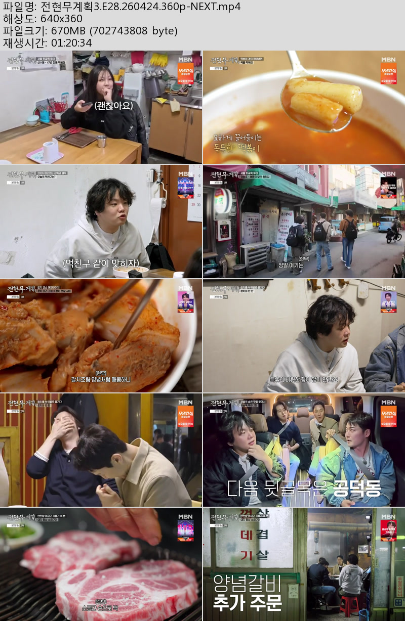 방송/동영상 전현무계획3 E28 NEXT 전현무계획3.E28.260424.360p-NEXT 우야쓰꼬 2026.04.25 6,242 670.2M 다운로드 1개 파일 전현무계획3.E28.260424.360p-NEXT.mp4 670.2M 다운 추천 226 북마크 공유 목록 Tags 전현무계획3 E28 NEXT