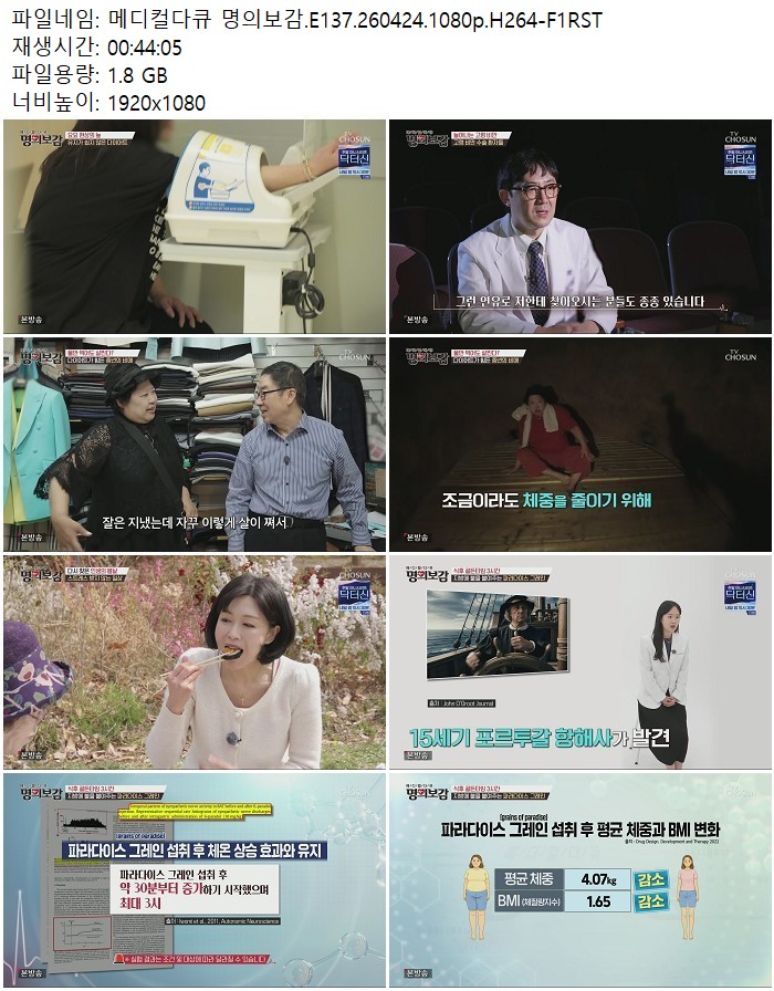 방송/동영상 메디컬다큐 명의보감 E137 메디컬다큐 명의보감.E137.260424.1080p.H264 디스사랑 2026.04.25 4,551 1.8G 다운로드 1개 파일 메디컬다큐 명의보감.E137.260424.1080p.H264-F1RST.mp4 1.8G 다운 추천 361 북마크 공유 목록 Tags 메디컬다큐 명의보감 E137 H264 F1RST
