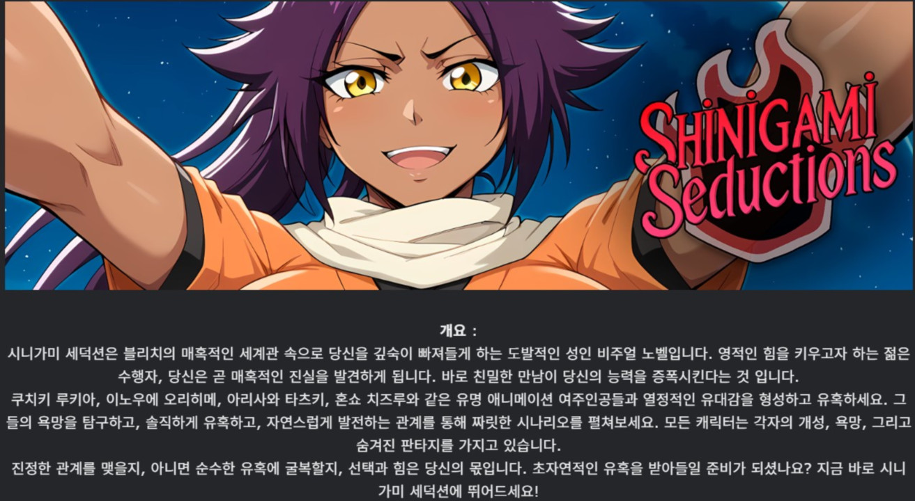 게임 한글 렌파이 남주 [한글.렌파이.남주.Ai.업뎃]Shinigami Seductions 0.5.zip nksmhsm 2026.04.25 7,491 168.8M 다운로드 1개 파일 [한글.렌파이.남주.Ai.업뎃]Shinigami Seductions 0.5.zip.ezc 168.8M 다운 추천 314 북마크 공유 목록 Tags 한글 렌파이 남주 Ai 업뎃