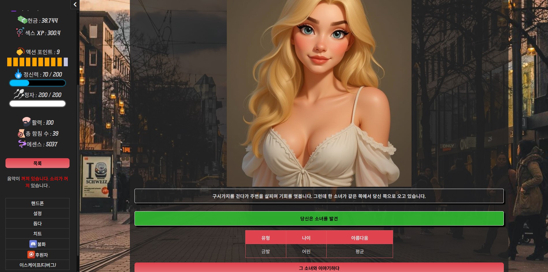 무작위로 생성된 NPC : 몰입감과 재생성을 위해 만나는 대부분의 소녀는 무작위로 생성되며 통계는 많은 요소와 특성에 따라