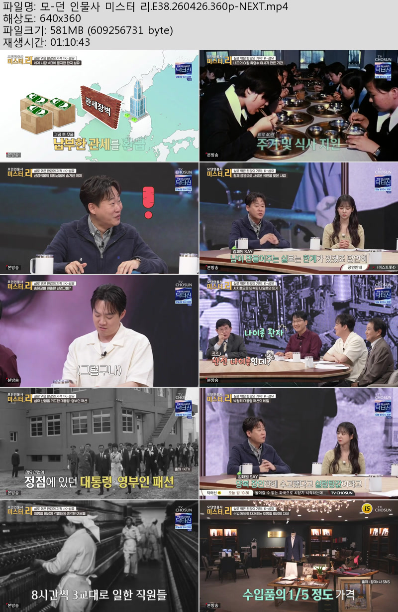 방송/동영상 인물사 미스터 E38 모-던 인물사 미스터 리.E38.260426.360p-NEXT 우야쓰꼬 2026.04.27 3,480 581.0M 다운로드 1개 파일 모-던 인물사 미스터 리.E38.260426.360p-NEXT.mp4 581.0M 다운 추천 354 북마크 공유 목록 Tags 인물사 미스터 E38 NEXT