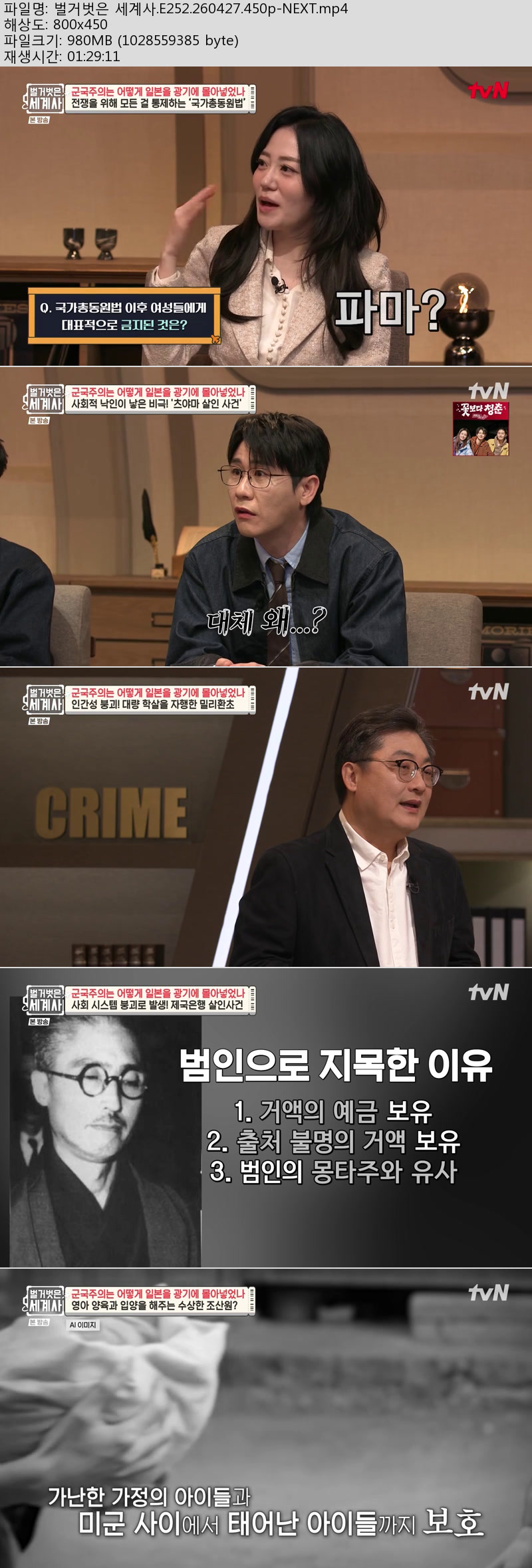 방송/동영상 벌거벗은 세계사 E252 벌거벗은 세계사.E252.260427.450p-NEXT 내사랑비타민 2026.04.28 6,485 980.9M 다운로드 1개 파일 벌거벗은 세계사.E252.260427.450p-NEXT.mp4 980.9M 다운 추천 450 북마크 공유 목록 Tags 벌거벗은 세계사 E252 NEXT