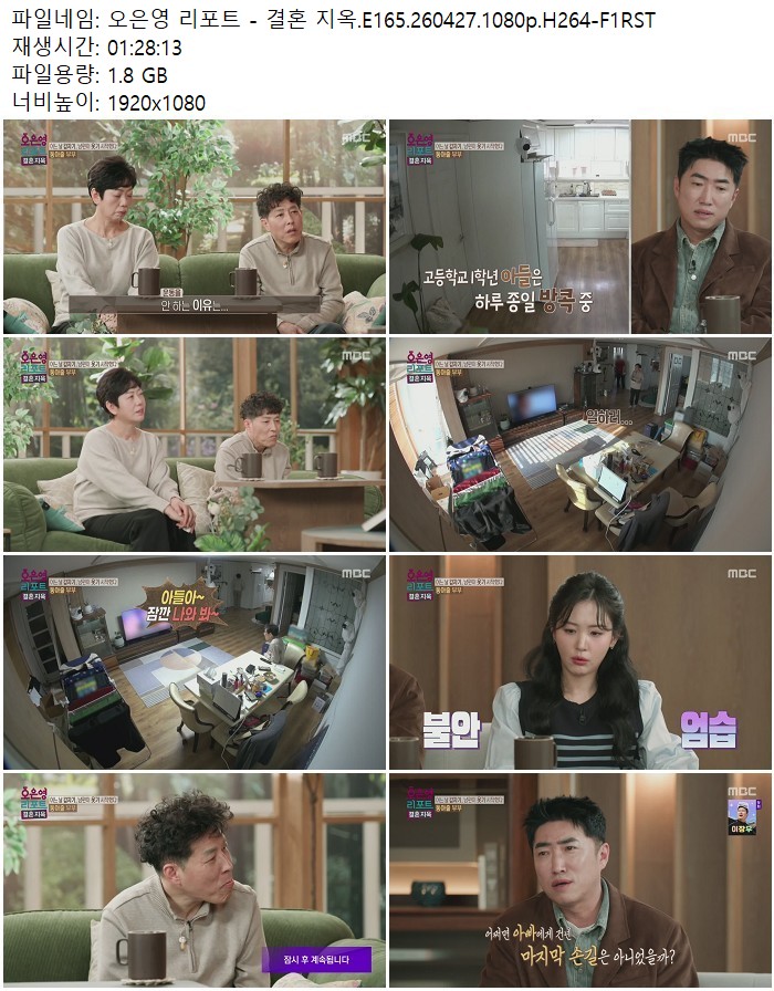 방송/동영상 오은영 리포트 결혼 오은영 리포트 - 결혼 지옥.E165.260427.1080p.H264 디스사랑 2026.04.29 4,954 1.8G 다운로드 1개 파일 오은영 리포트 - 결혼 지옥.E165.260427.1080p.H264-F1RST.mp4 1.8G 다운 추천 439 북마크 공유 목록 Tags 오은영 리포트 결혼 지옥 E165