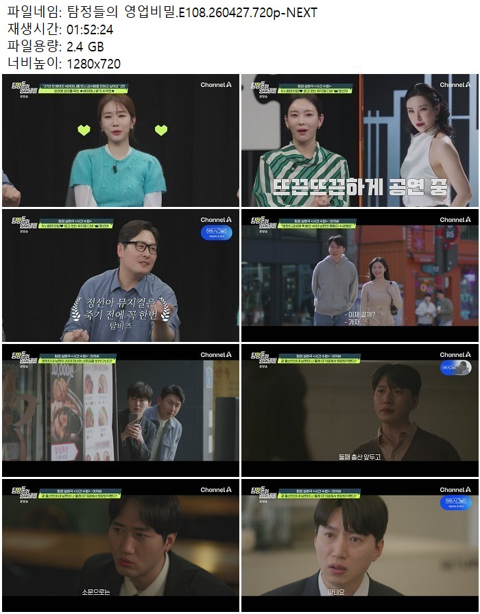 방송/동영상 탐정들의 영업비밀 E108 탐정들의 영업비밀.E108.260427.720p-NEXT 디스사랑 2026.04.29 4,923 2.4G 다운로드 1개 파일 탐정들의 영업비밀.E108.260427.720p-NEXT.mp4 2.4G 다운 추천 425 북마크 공유 목록 Tags 탐정들의 영업비밀 E108 NEXT