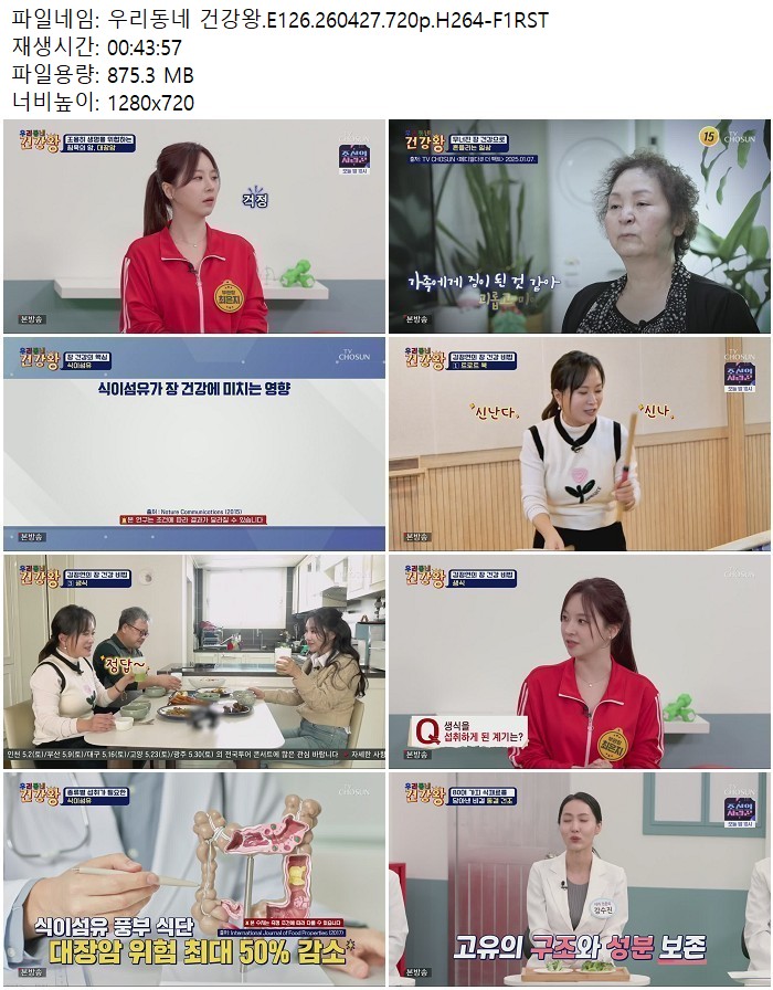 방송/동영상 우리동네 건강왕 E126 우리동네 건강왕.E126.260427.720p.H264 디스사랑 2026.04.29 7,100 875.3M 다운로드 1개 파일 우리동네 건강왕.E126.260427.720p.H264-F1RST.mp4 875.3M 다운 추천 321 북마크 공유 목록 Tags 우리동네 건강왕 E126 H264 F1RST
