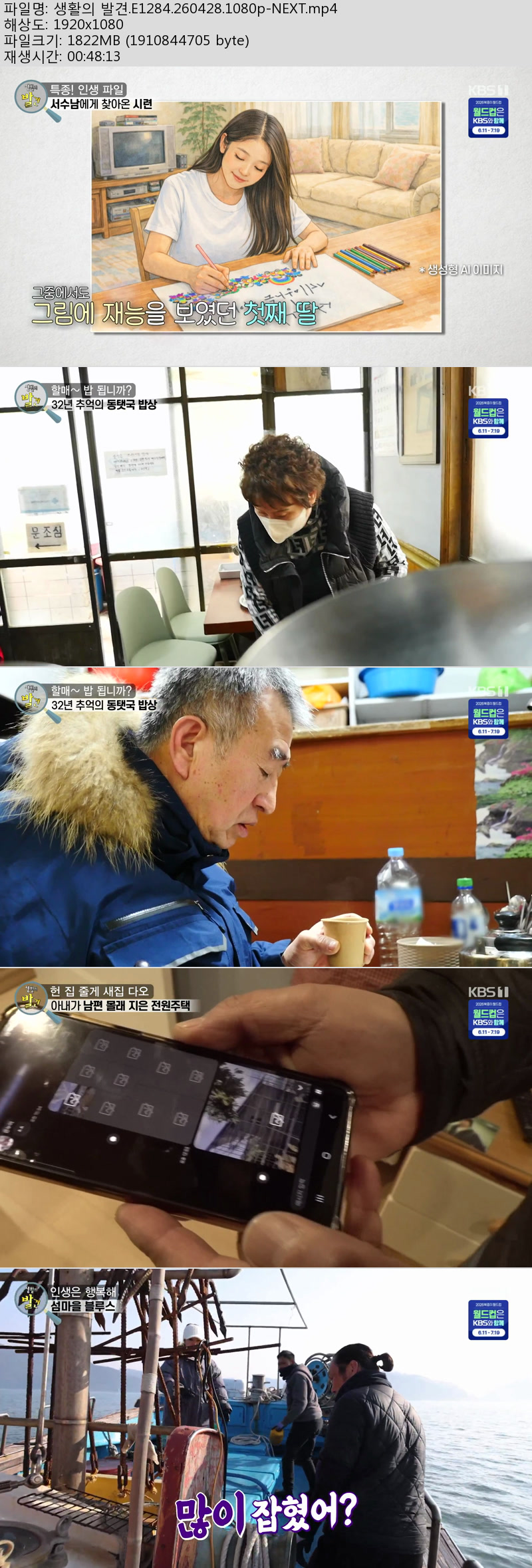 방송/동영상 생활의 발견 E1284 생활의 발견.E1284.260428.1080p-NEXT 미아아빠 2026.04.29 3,404 1.8G 다운로드 1개 파일 생활의 발견.E1284.260428.1080p-NEXT.mp4 1.8G 다운 추천 395 북마크 공유 목록 Tags 생활의 발견 E1284 NEXT