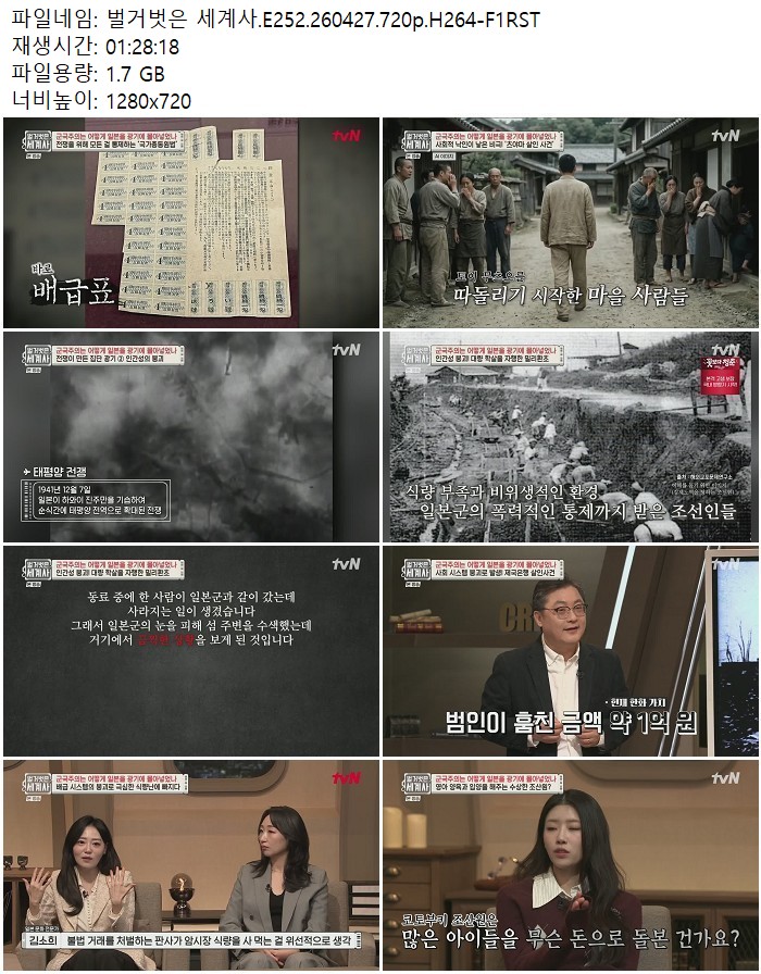 방송/동영상 벌거벗은 세계사 E252 벌거벗은 세계사.E252.260427.720p.H264 디스사랑 2026.04.29 6,043 1.7G 다운로드 1개 파일 벌거벗은 세계사.E252.260427.720p.H264-F1RST.mp4 1.7G 다운 추천 326 북마크 공유 목록 Tags 벌거벗은 세계사 E252 H264 F1RST