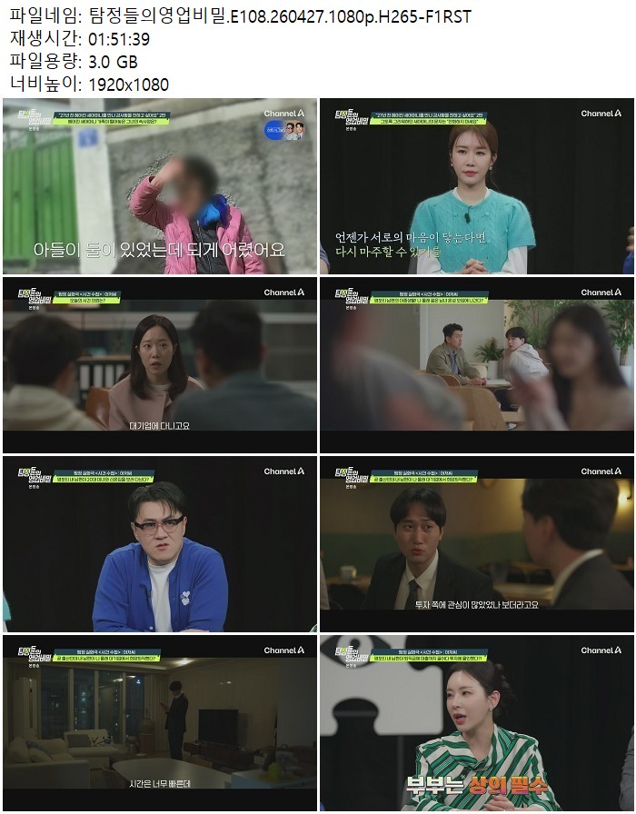 방송/동영상 탐정들의영업비밀 E108 H265 탐정들의영업비밀.E108.260427.1080p.H265 디스사랑 2026.04.29 5,566 3.0G 다운로드 1개 파일 탐정들의영업비밀.E108.260427.1080p.H265-F1RST.mp4 3.0G 다운 추천 442 북마크 공유 목록 Tags 탐정들의영업비밀 E108 H265 F1RST