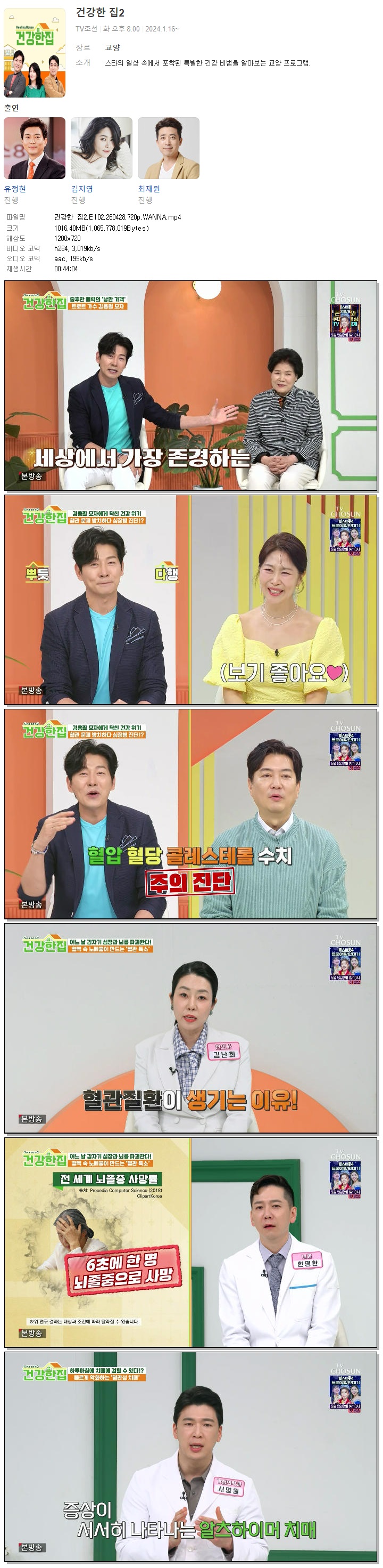 방송/동영상 건강한 집2 E102 건강한 집2.E102.260428.720p.WANNA 다판다 2026.04.29 5,600 1,016.4M 다운로드 1개 파일 건강한 집2.E102.260428.720p.WANNA.mp4 1,016.4M 다운 추천 377 북마크 공유 목록 Tags 건강한 집2 E102 WANNA
