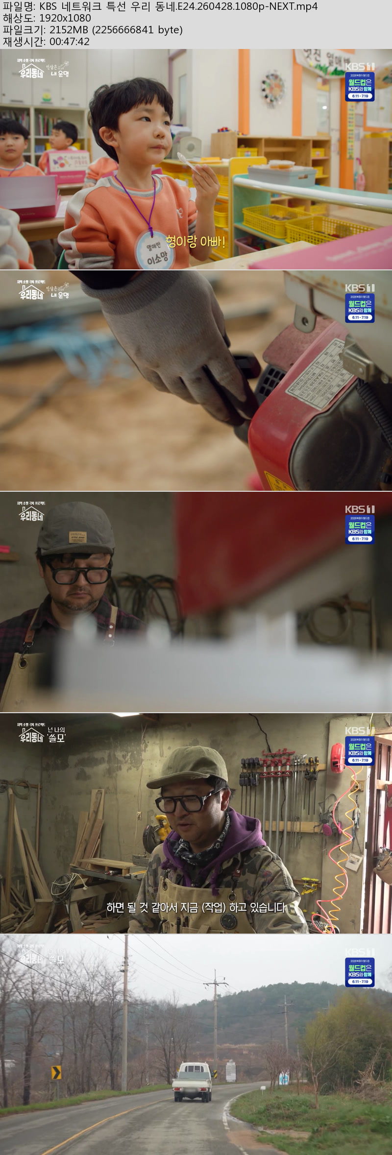 방송/동영상 KBS 네트워크 특선 KBS 네트워크 특선 우리 동네.E24.260428.1080p-NEXT 에이버 2026.04.29 7,956 2.1G 다운로드 1개 파일 KBS 네트워크 특선 우리 동네.E24.260428.1080p-NEXT.mp4 2.1G 다운 추천 272 북마크 공유 목록 Tags KBS 네트워크 특선 우리 동네
