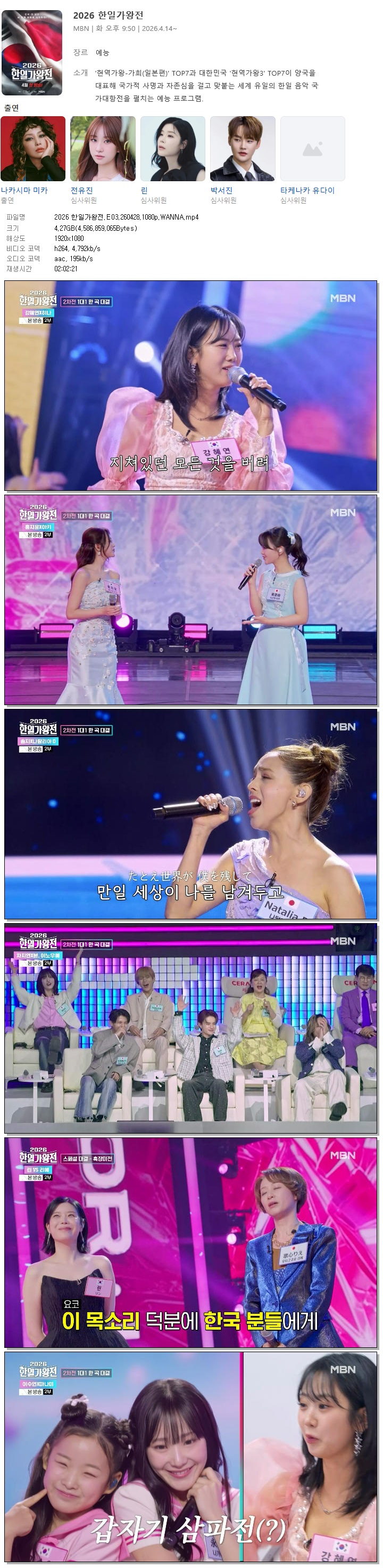 방송/동영상 한일가왕전 E03 WANNA 2026 한일가왕전.E03.260428.1080p.WANNA 꽁짜는없다 2026.04.29 7,947 4.3G 다운로드 1개 파일 2026 한일가왕전.E03.260428.1080p.WANNA.mp4 4.3G 다운 추천 302 북마크 공유 목록 Tags 한일가왕전 E03 WANNA