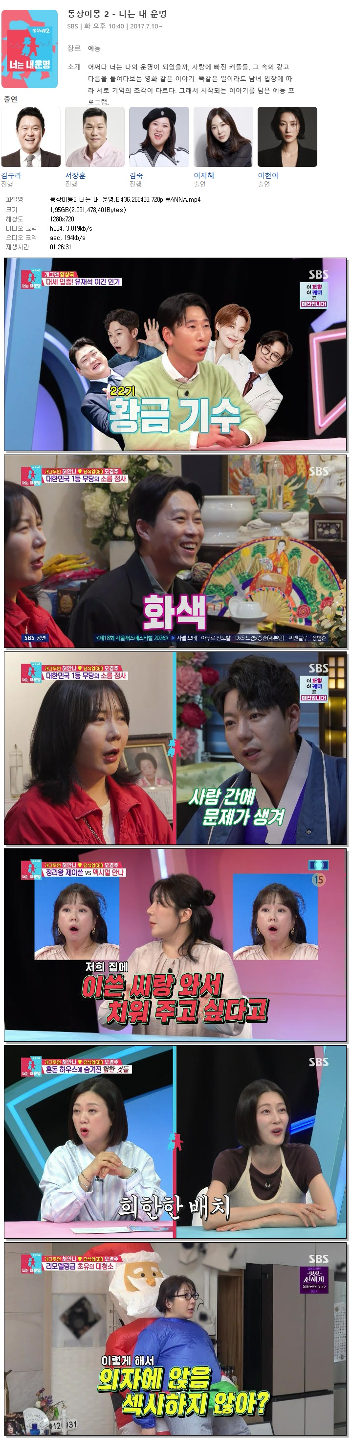 방송/동영상 동상이몽2 너는 운명 동상이몽2 너는 내 운명.E436.260428.720p.WANNA 다판다 2026.04.29 5,827 1.9G 다운로드 1개 파일 동상이몽2 너는 내 운명.E436.260428.720p.WANNA.mp4 1.9G 다운 추천 235 북마크 공유 목록 Tags 동상이몽2 너는 운명 E436 WANNA