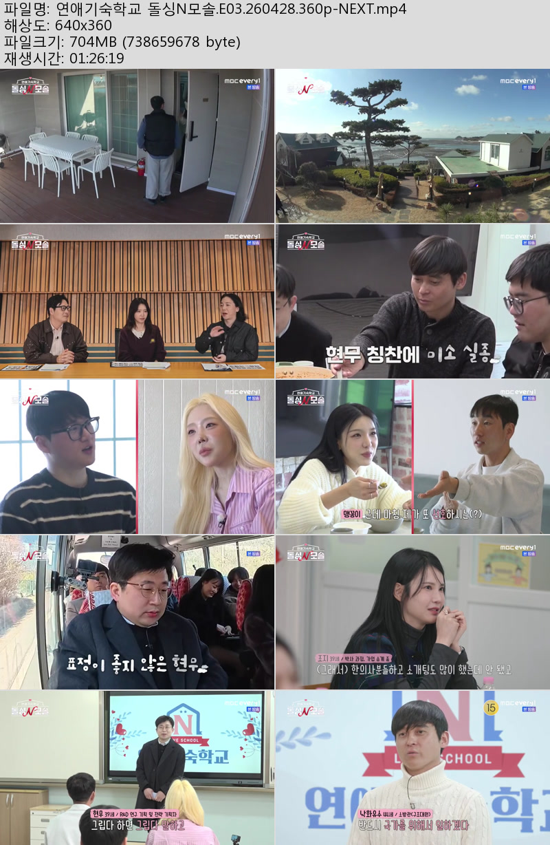 방송/동영상 연애기숙학교 돌싱N모솔 E03 연애기숙학교 돌싱N모솔.E03.260428.360p-NEXT 우야쓰꼬 2026.04.29 4,737 704.4M 다운로드 1개 파일 연애기숙학교 돌싱N모솔.E03.260428.360p-NEXT.mp4 704.4M 다운 추천 434 북마크 공유 목록 Tags 연애기숙학교 돌싱N모솔 E03 NEXT