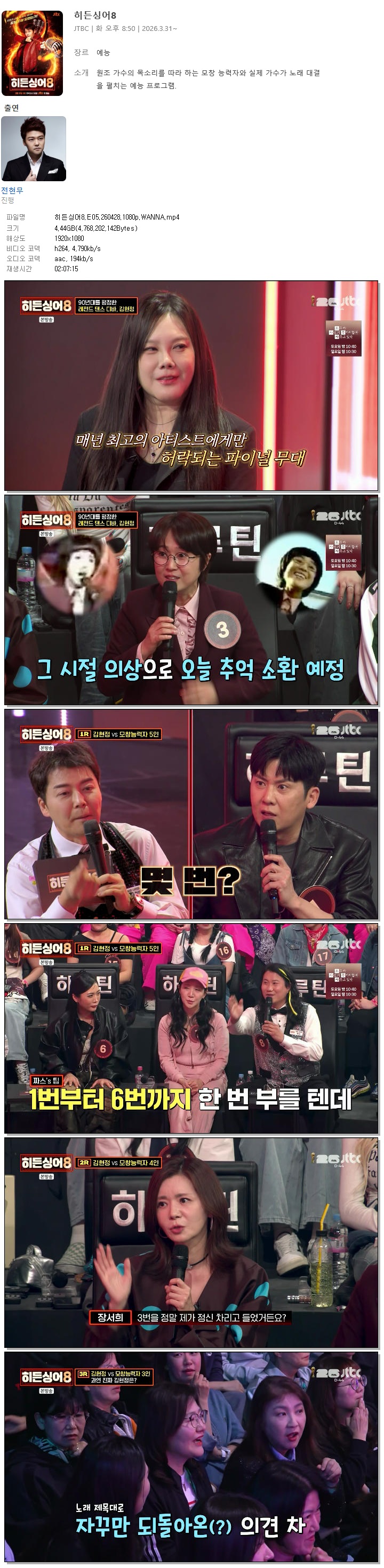 방송/동영상 히든싱어8 E05 WANNA 히든싱어8.E05.260428.1080p.WANNA 꽁짜는없다 2026.04.29 5,593 4.4G 다운로드 1개 파일 히든싱어8.E05.260428.1080p.WANNA.mp4 4.4G 다운 추천 426 북마크 공유 목록 Tags 히든싱어8 E05 WANNA