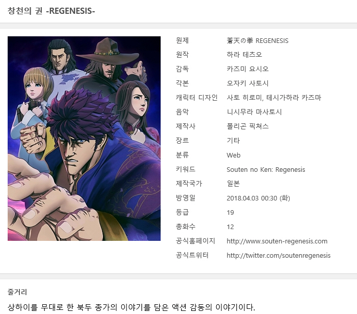 애니메이션 쪽지 창천의 리제네시스 [쪽지] 창천의 권 - 리제네시스 01-12완결 -모험 스릴러 액션- 쪽지사랑 2026.04.29 3,911 3.8G 다운로드 1개 파일 창천의 권 - 리제네시스! 01~12(완) 3.8G 다운 추천 210 북마크 공유 목록 Tags 쪽지 창천의 리제네시스 12완결 모험