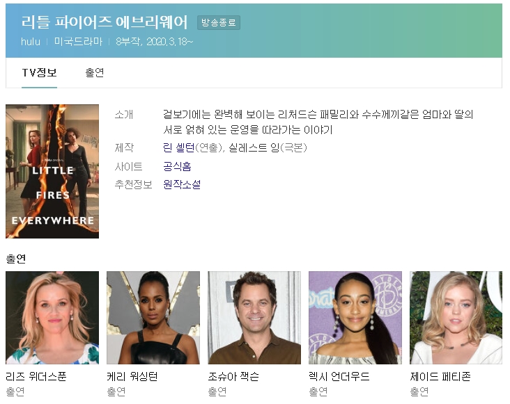드라마 리틀파이어즈에브리웨어 Little Fires 리틀파이어즈에브리웨어(Little Fires Everywhere) 시즌1 05화 vandals 2026.01.01 5,741 829.0M 리틀파이어즈에브리웨어(Little Fires Everywhere) 시즌1 05화리틀파이어즈에브리웨어(Little Fires Everywhere) 시즌1 05화 다운로드 1개 파일 Little.Fires.Everywhere.S01E05.720p.HULU.WEB-DL.DDP… 829.0M 다운 추천 800 북마크 공유 목록 Tags 리틀파이어즈에브리웨어 Little Fires Everywhere 시즌1 05화