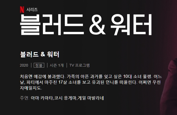 드라마 블러드앤워터 Blood and 블러드앤워터(Blood and Water) 시즌1 6부작.완결 vandals 2026.01.01 3,300 5.0G 블러드앤워터(Blood and Water) 시즌1 6부작.완결블러드앤워터(Blood and Water) 시즌1 6부작.완결 다운로드 1개 파일 Blood.and.Water.2020.S01E01.720p.WEB.H264-EDHD.mkv 5.0G 다운 추천 609 북마크 공유 목록 Tags 블러드앤워터 Blood and Water 시즌1 6부작 완결