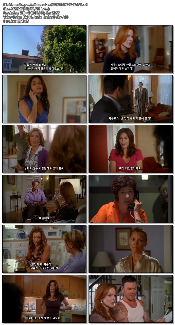 드라마 위기의 주부들 시즌7 [위기의 주부들 시즌7 완결(총23화)] - 한글자막 (코믹추천미드) delium 2026.01.01 5,677 9.7G 다운로드 1개 파일 Desperate.Housewives.S07E01.HDTV.XviD-LOL.avi 9.7G 다운 추천 629 북마크 공유 목록 Tags 위기의 주부들 시즌7 완결 총23화 한글자막 코믹추천미드