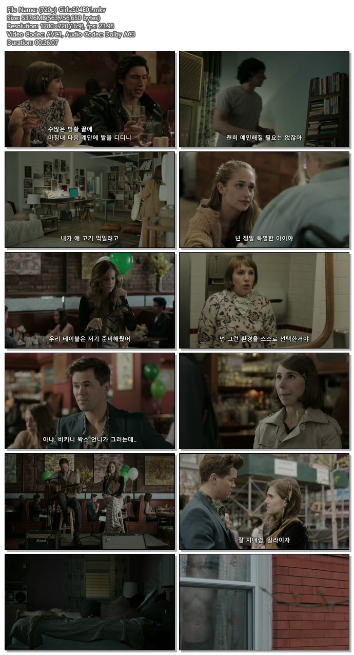 드라마 걸스 시즌4 완결 걸스 시즌4 완결(총10화) - 한글자막.HD720p (걸스 다이어리 인 뉴욕) delium 2026.01.01 4,773 5.1G 다운로드 1개 파일 (720p) Girls.S04E01.mkv 5.1G 다운 추천 527 북마크 공유 목록 Tags 걸스 시즌4 완결 총10화 한글자막 HD720p 걸스 다이어리 인 뉴욕
